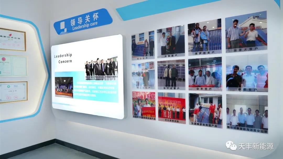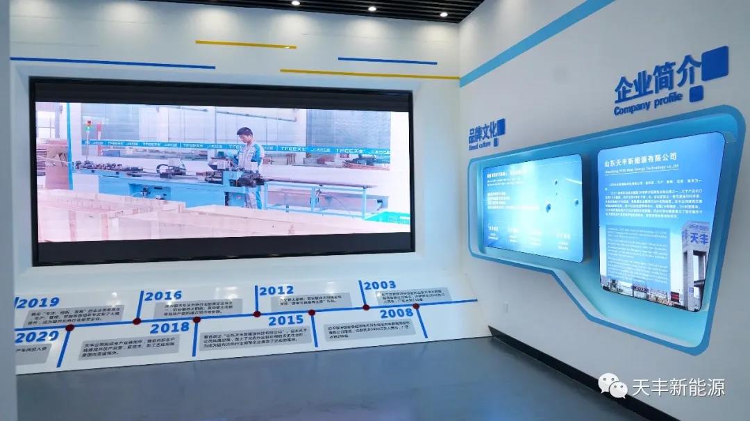 天豐新能源企業(yè)文化展廳,以 色彩”與“科技”為核心理念,展示著天豐產品的過硬資質,安裝時的精雕細琢,可謂一步一“景”,一景一“藝”,處處體現(xiàn)天豐新能源的匠心出品與精湛工藝,科技感與現(xiàn)代感融合,正是天豐新能源帶給客戶的佳體驗。