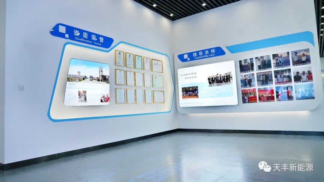2020年8月,天豐新能源企業(yè)文化展廳正式落成,并將在本月正式啟用,整個展廳設計包括:企業(yè)簡介、品牌文化、發(fā)展歷程、資質榮譽、領導關懷、生產流程、產品類別、場景方案、案例展示、合作伙伴十大方面,從形象、發(fā)展、成就、未來等多個角度為客戶呈現(xiàn)出天豐新能源充盈飽滿的品牌力量,這是天豐新能源精神堡壘的重要組成。
